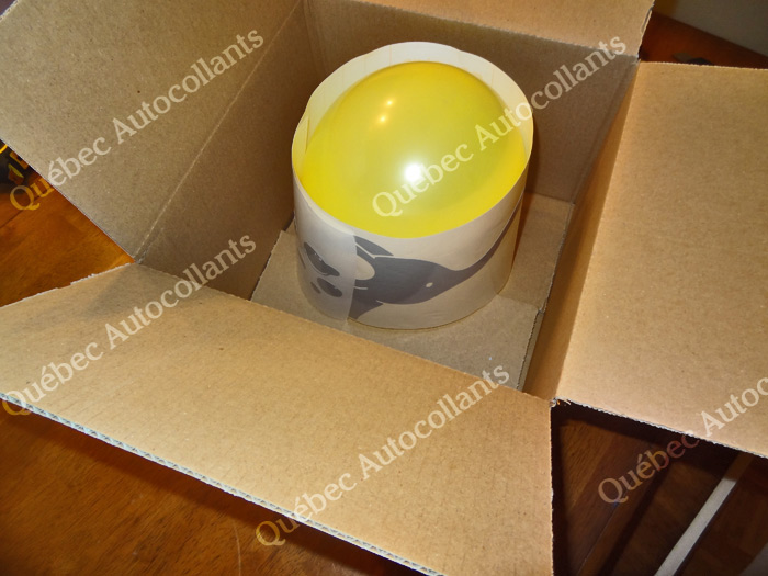 Voici exactement comment nous expédions nos autocollants en boite. Nous les emballons soigneusement dans une boîte en carton robuste. Nous roulons les autocollants autour d'un ballon afin qu'ils restent dans sa forme original, sans être froissé lorsque vous le déroulé.