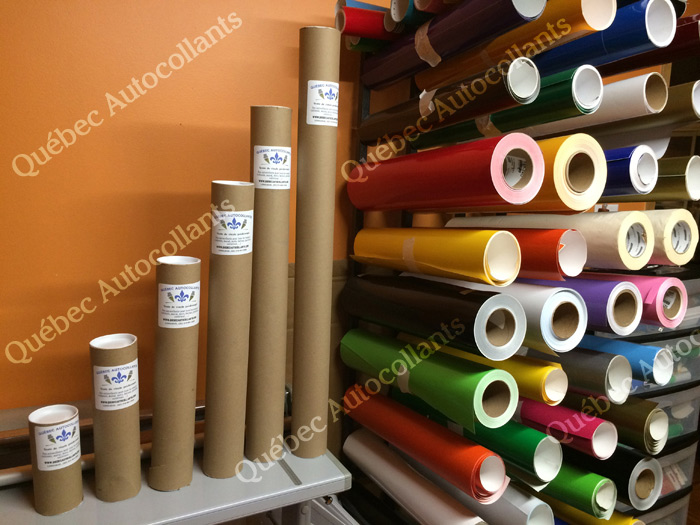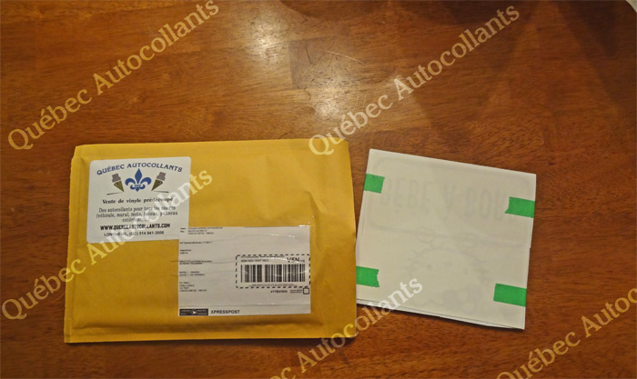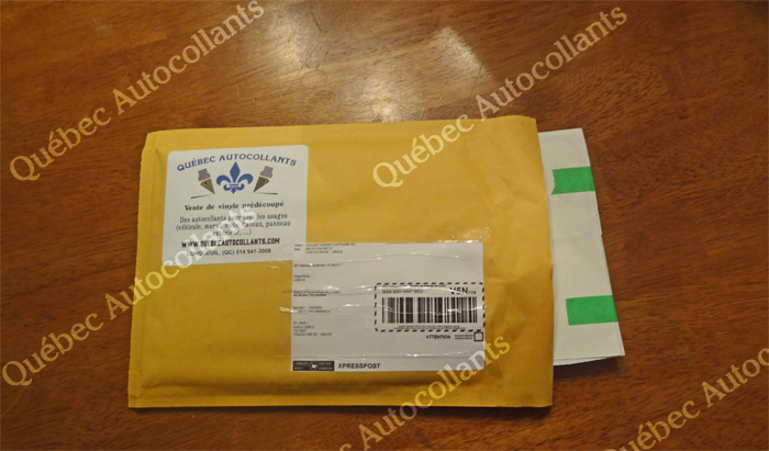 Pour nos autocollants nous utilisons des enveloppes rembourrées, des boîtes en carton résistantes pour les expédier. Nous avons aussi les tubes de 3". Les boîtes permettent à l'autocollant d'être roulé, mais pas de façon serrée et cela fonctionne très bien. Nous avons aussi des boîtes pour expédier des autocollants plus larges.